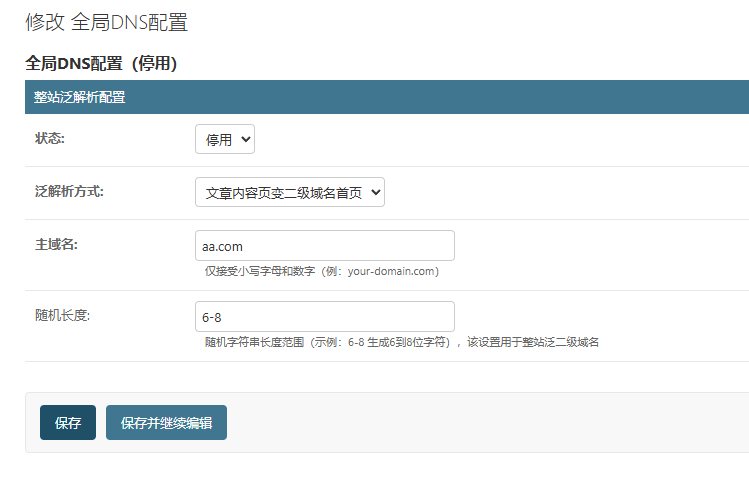 整站泛二级域名可以与URL样式设置中的随机字符同时使用,开启双泛功能。
