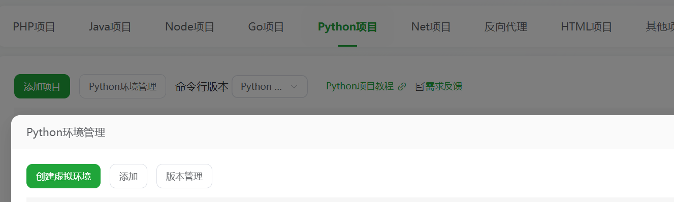 我们点击确定。此时宝塔就开始为我们搭建虚拟环境了,每个项目都拥有独立的环境。