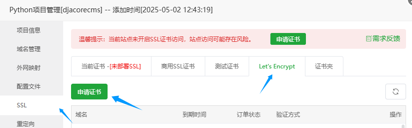 https的使用是现在非常常见的事件,我们先在SSL证书那里申请ssl证书