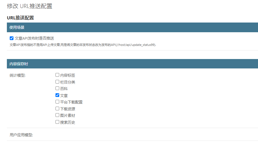 这里我们可以选择哪些模型保存时可以直接后台推送URL,包括我们核心模型以及userspace/apps下自定义模型